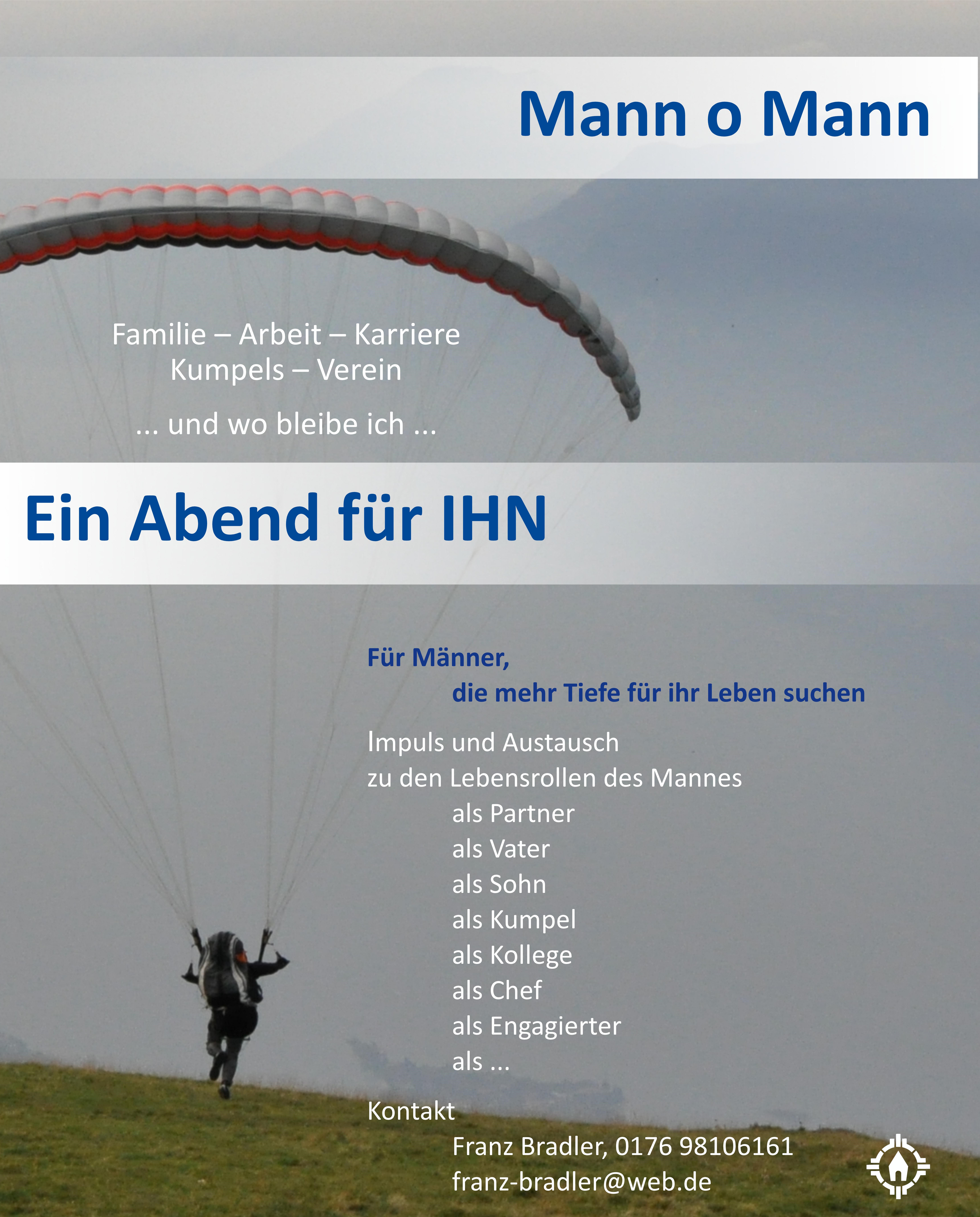 | 16.06.2026 | Ein Abend für Ihn, von 19:30 Uhr bis 21:30 Uhr, Flyer | Gemeindezentrum St. Maria Heidenheim |
